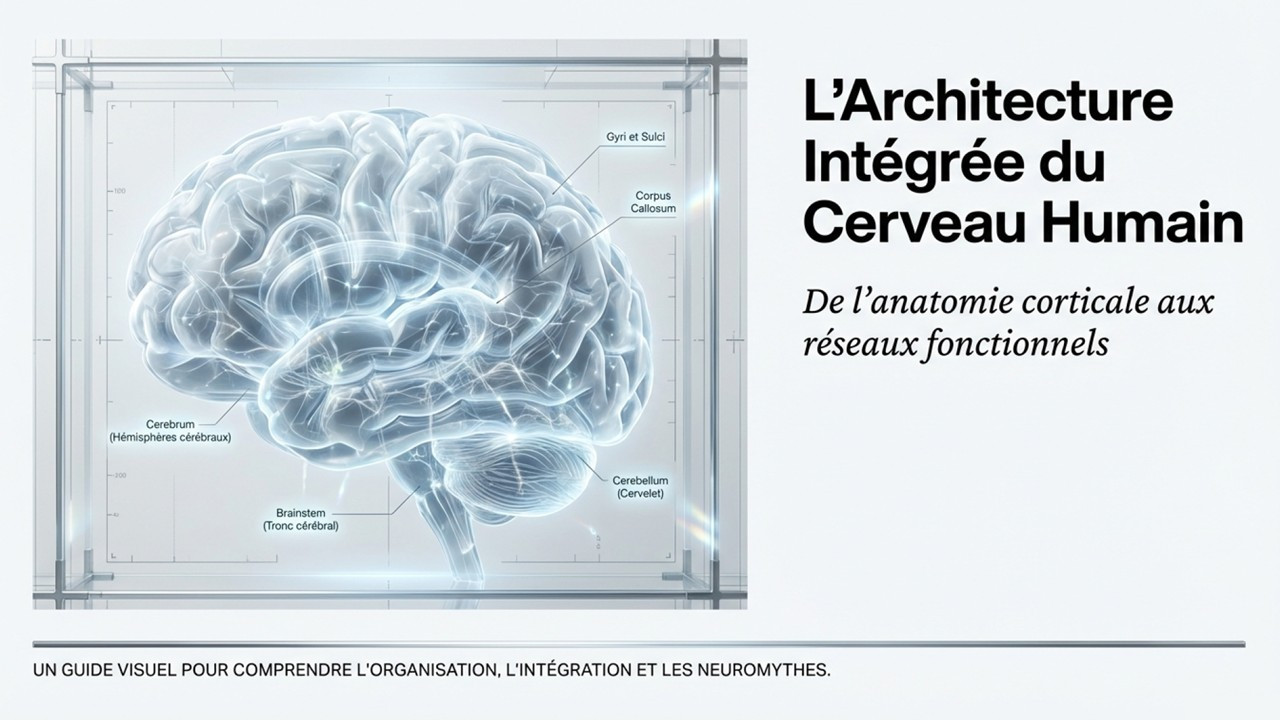 - Différentes parties principales : cortex, tronc cérébral, cervelet, hémisphères cérébraux et latéralisation.
